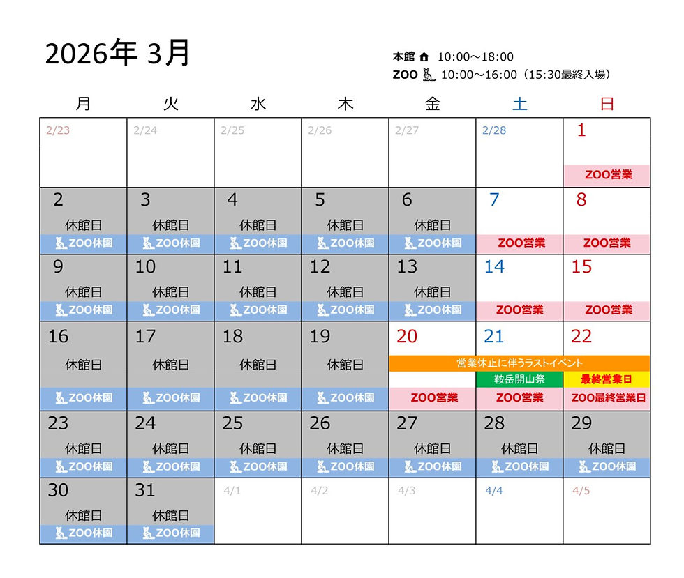 ②🏠3月営業曜日(🦘シキノサトズーも含む)
